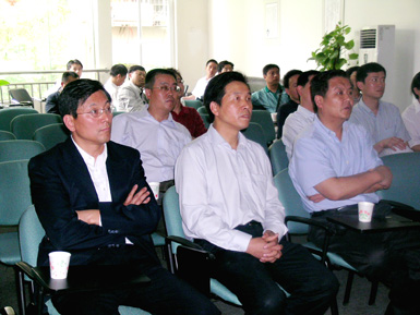 王忠林副市长一行受到公司总经理王鹏的热情迎接,在公司培训大厅,王总就网站建设、网络营销及电子商务一站式服务等业务情况向领导们进行了汇报。在汇报和演示过程中,王忠林副市长和其他领导们在认真听取汇报的同时,还针对公司现有业务的服务方式,产品表现形式,赢利模式及公司的发展状况等情况进行了详细的询问。